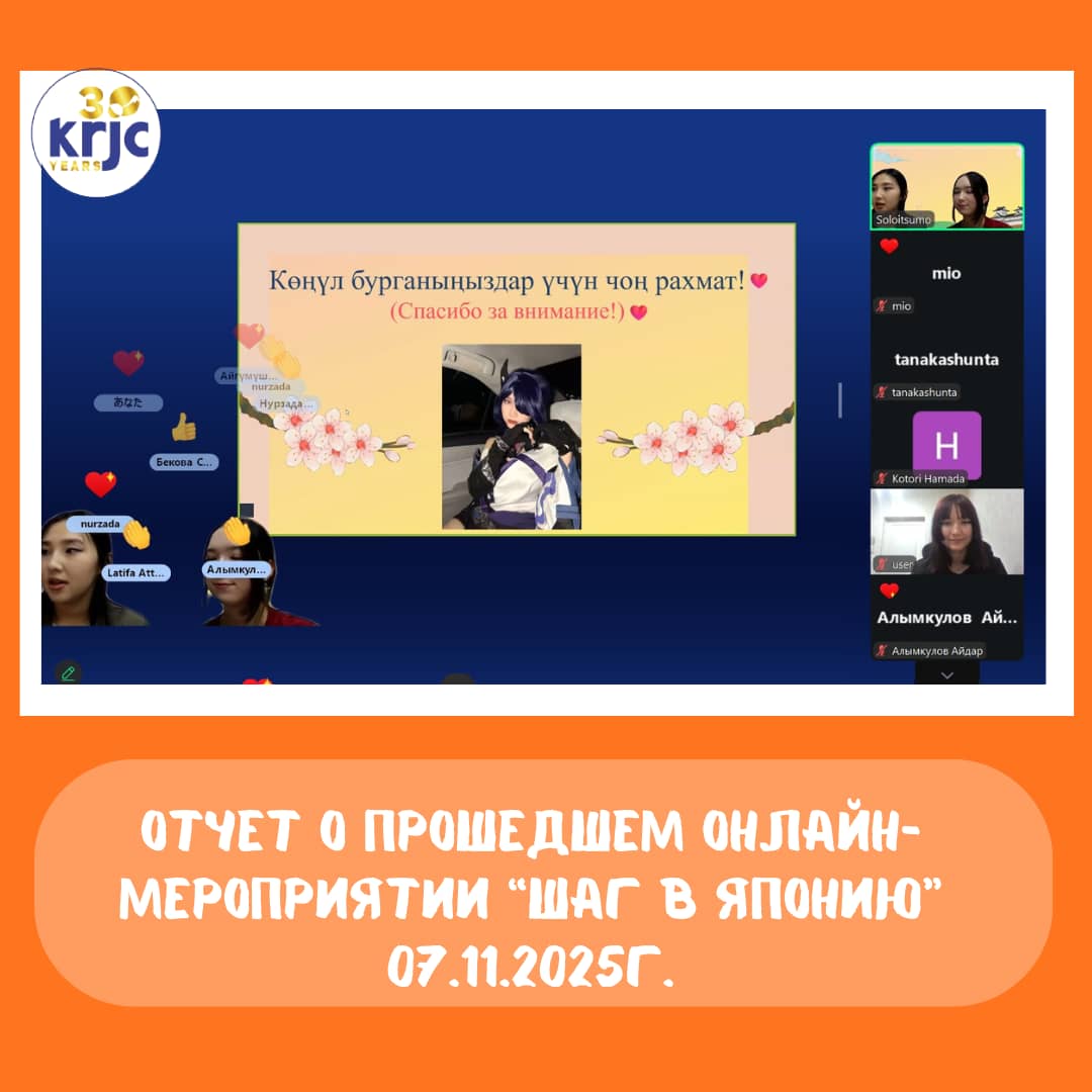 7-ноябрда биз ийгиликтүү түрдө «Японияга кадам» аттуу онлайн иш-чараны өткөрдүк.