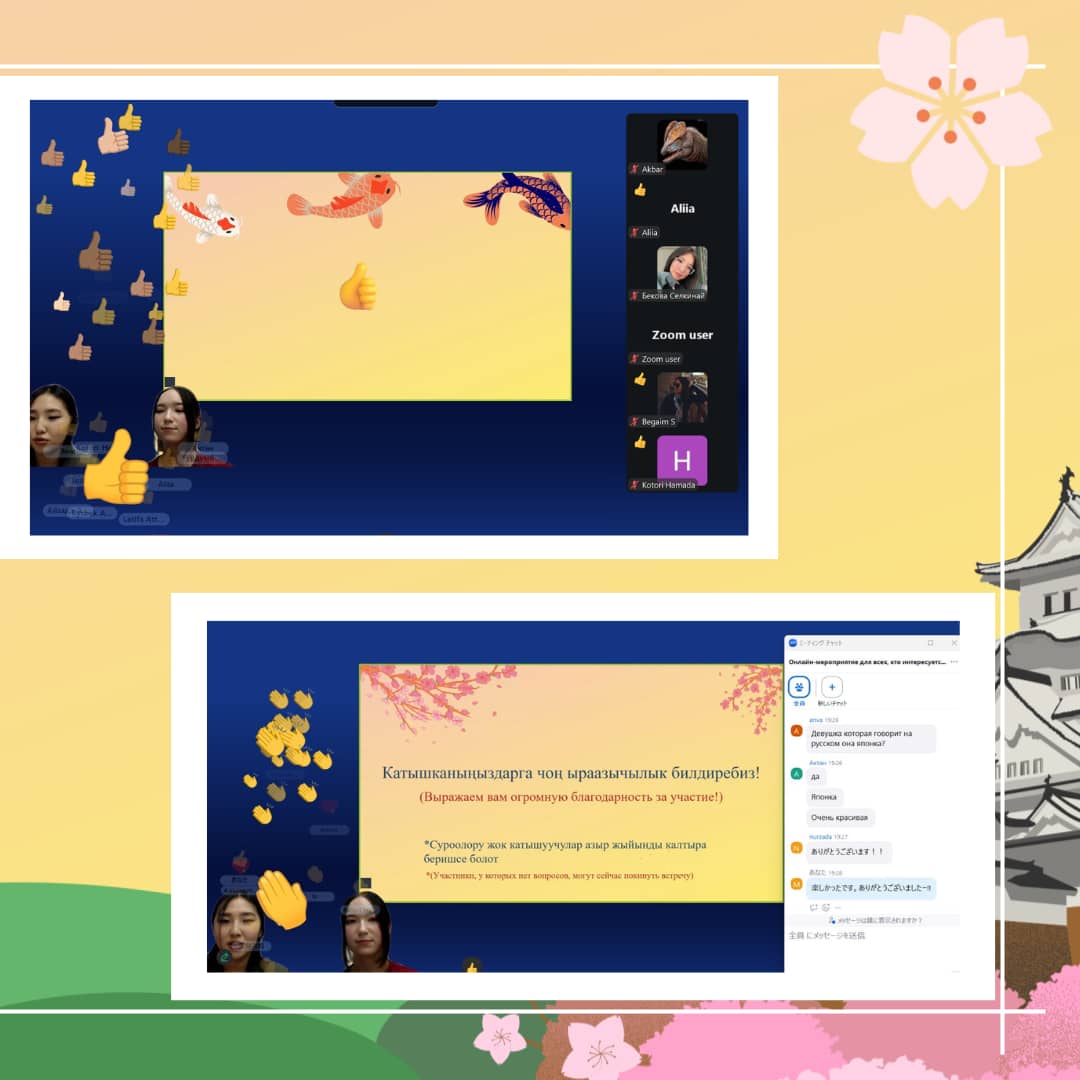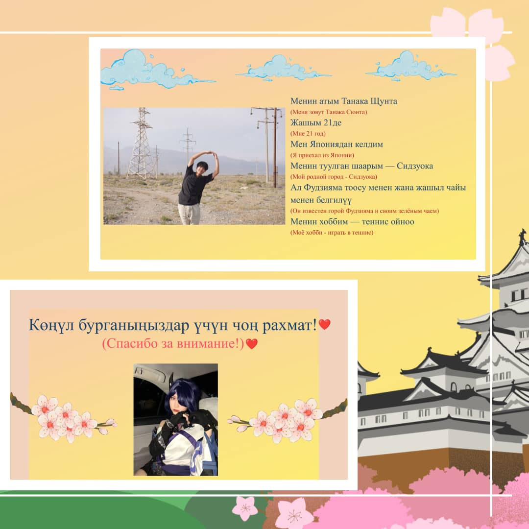Айрыкча терең ыраазычылык билдиребиз биздин керемет презентаторлорубуз — Танака Шунта жана Арине-сэнсэйге — кызыктуу презентациялары, жандуу баяндоолору жана Япониядагы жашоодон келтирилген мисалдары үчүн. 🌸